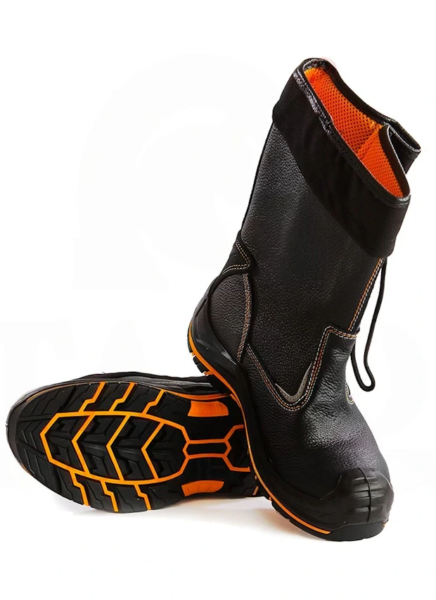 Цельноюфтевые сапоги из натуральной термоустойчивой кожи толщиной 1,8–2,0 мм. Полиуретановая накладка на носке и пятке для дополнительной защиты обуви от повреждений.